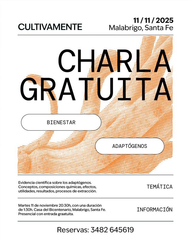 Este martes 11 de noviembre, la Casa del Bicentenario de Malabrigo será escenario de una propuesta de Cultivamente bajo el lema “Cultivar la mente, defender el cuerpo”. La actividad invita a descubrir el poder de los adaptógenos, compuestos naturales que ayudan a mejorar el equilibrio físico y emocional.