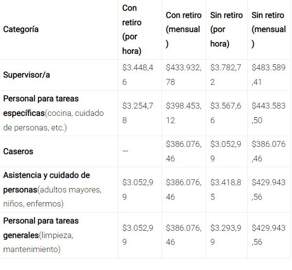 El esquema vigente establece que el personal con retiro cobra $3.052,99 por hora, mientras que quienes trabajan sin retiro perciben $3.293,99. Estas cifras corresponden al salario básico y, en la práctica, suelen ser superiores, ya que los valores reales pagados en el mercado oscilan entre $6.000 y $8.000 por hora, según la localidad y la carga horaria.