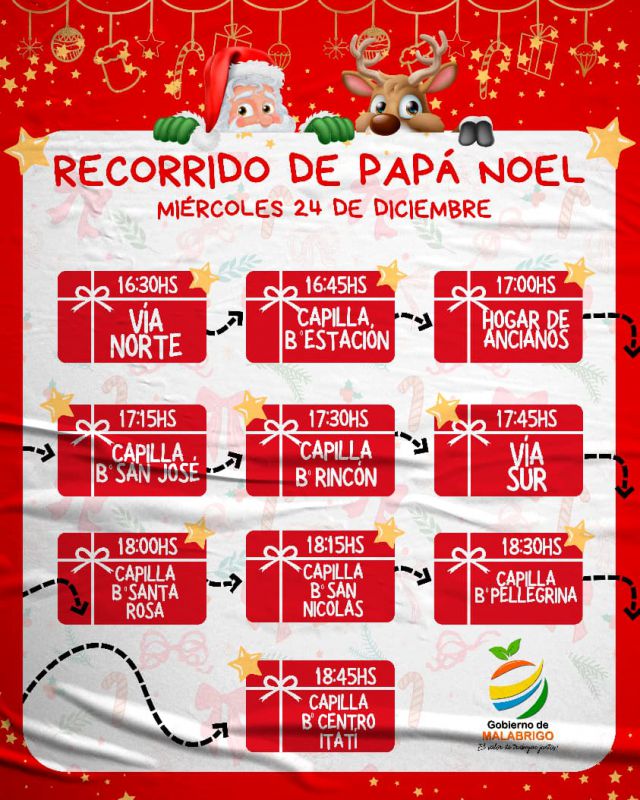Este miércoles 24, Papá Noel estará visitando los distintos barrios de nuestra ciudad para compartir sonrisas, presentes, saludos y la magia de la Navidad.